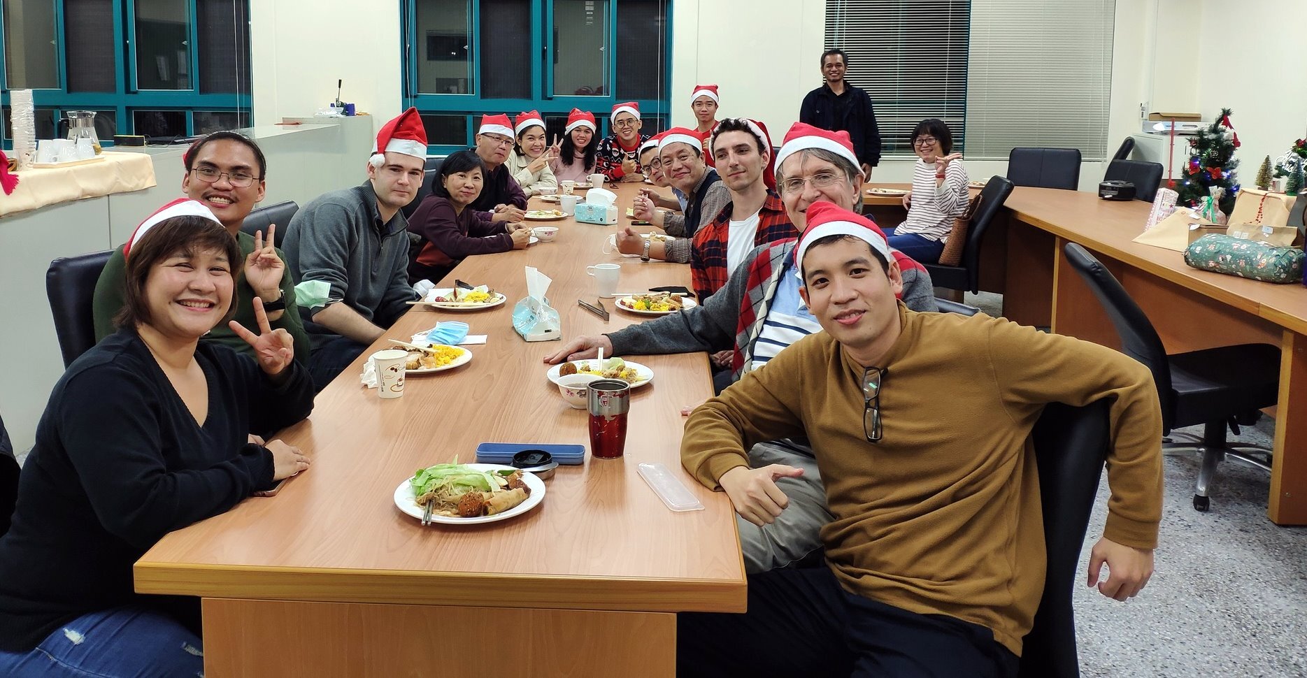 因疫情關係,亞太區域研究博士班外籍生入學後,都無法返回所屬國家過節,為讓異鄉學子在團聚的佳節感受臺灣的溫暖,特別舉辦溫馨聖誕團聚Pa,邀請在學學生與指導老師一同團聚,交換禮物相互祝福,渡過一個熱情的夜晚。另外,亞太區域研究博士班本屆最後2位入境的同學因在隔離中,為讓在隔離時也可感受歡聚的氣氛,同學也遞送聖誕餐點與祝福,與大家同樂。