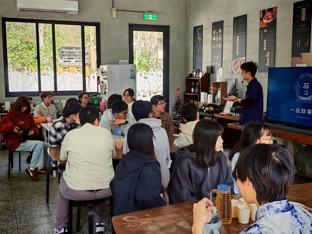 上午課程前往知名醬油場域「一品醇」。學生在專業導覽下,觀察傳統釀造醬油從原料發酵到熟成的繁複工序。在VIP課程「理論打底、實踐應用」的架構下,學生不只體驗風味醬油DIY,更從光電與自動化背景出發,探討發酵環境中溫度與濕度監測的精準控制度,思考如何以智慧科技賦能傳統工藝。
