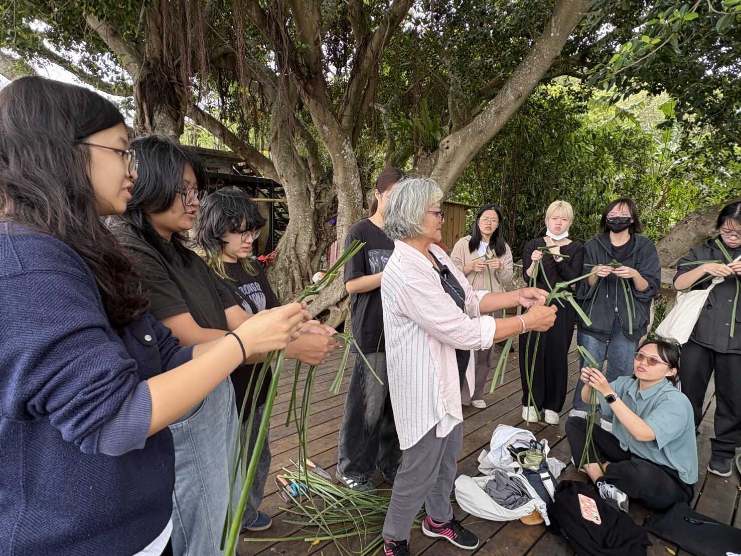 除環境議題外,本次活動亦融入文化體驗元素。學生採集林投葉後,回到位於山腰上,倚山面海的「Hatila在磯崎工作室」學習處理充滿尖刺的林投葉為編織素材。在部落媽媽指導下開始編織「阿里鳳鳳」,以便之後裝入白米烹煮。部落媽媽說「阿里鳳鳳」原本是傳統部落男子上山打獵或出海捕魚時帶在身上的便當。由於磯崎地處偏遠,物資貧乏,林投葉雖然不好處理,但卻是當年比較容易取得利用的素材。學生也因此認識原住民族如何就地取材,善用自然素材,發展出具實用性與文化意涵的生活技藝。透過親手製作阿里鳳鳳,除了學習原住民族編織文化外,也體驗到原住民族的傳統智慧。