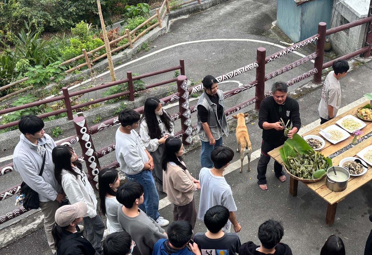 在等待午餐時,陳科睿講述磯崎部落一帶原本是無人居住區域。1878年加禮宛事件後有撒奇萊雅族遷入,1937年後陸續有噶瑪蘭族、布農族、太巴塱社阿美族人加入,形成文化交融。也分享磯崎海水浴場建設如何繁榮,到逐漸難以經營的現況,供同學思考山海劇場議題。最後課程在大家享用自己做的阿里鳳鳳及原住民族風味餐後賦歸。